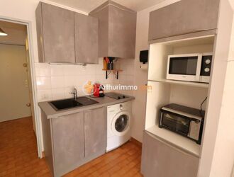 Dans une résidence sécurisée, parfaitement entretenue et offrant de belles prestations (piscines, terrains de boules), venez découvrir ce charmant studio cabine meublé de 20 m², situé au 1er étage. Il se compose d’une entrée avec dressing, d’un séjour lumineux avec kitchenette, d’une salle d’eau, de WC séparés, ainsi que d’une loggia fermée exposée plein Sud, offrant une vue dégagée et un espace de vie supplémentaire très agréable. L'appartement est à 450m de la plage et à 50m des commerces. Location à l’année – Soumise à la Garantie Loyers Impayés (GLI)